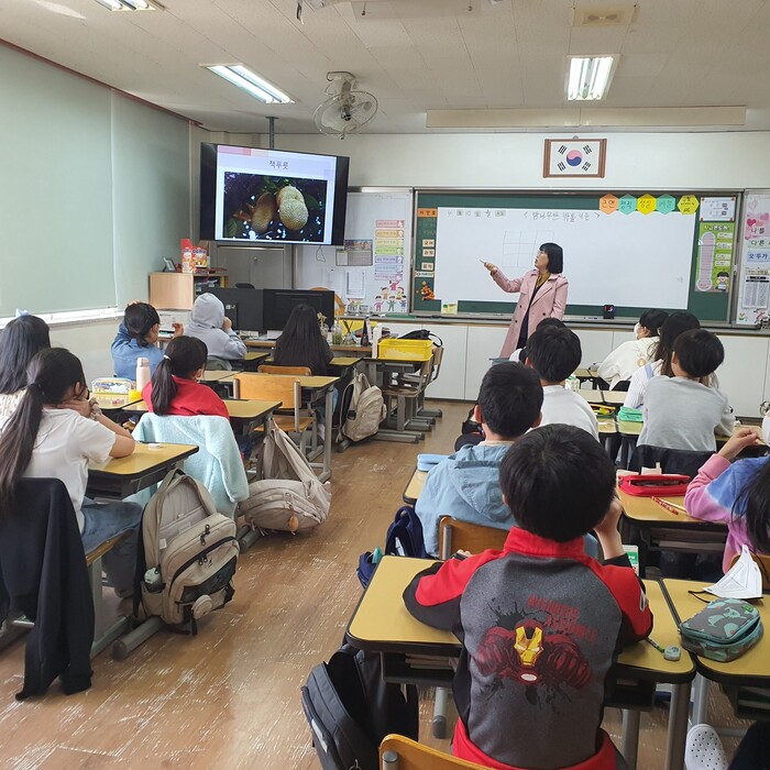 사진/ 학생들이 ‘찾아가는 문화다양성 이해교육’을 받고 있다.(사진제공=수원시)