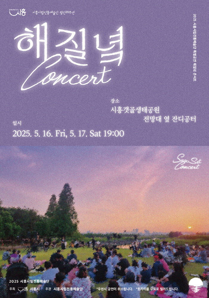 시흥시(시장 임병택)는 5월 16일부터 17일까지 이틀간 갯골생태공원에서 시립전통예술단 ‘해 질 녘 콘서트’를 개최한다.