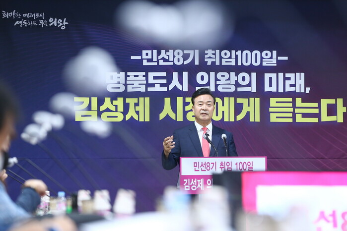 김성제 의왕시장은 6일 민선 8기 취임 100일을 맞아 시청 중회의실에서 기자 회견을 열고 그동안의 시정성과와 민선 8기 시정 발전방안에 대해 공유하는 시간을 가졌다.