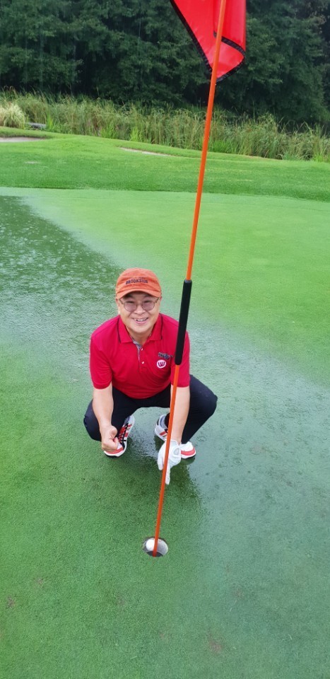 이날 박현진씨는 16번 홀을 마치고 17번 홀로 이동하는 순간 조금씩 내리던 비가 갑자기 많은 량이 쏟아져 17번홀(파3, 145미터)에서 6번 아이언으로 온 그린만 하면 좋겠다는 심정으로 티샷한 볼이 홀컵으로 빨려 들어가는 행운을 얻었다.