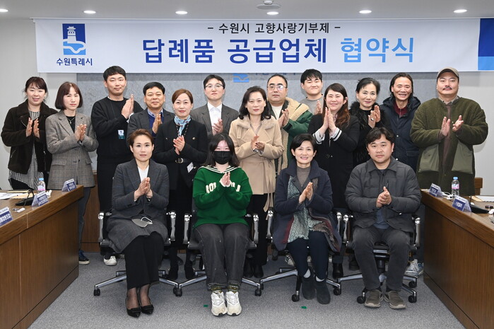 수원시는 17일 시청 상황실에서 고향사랑기부제 답례품 공급업체와 협약을 체결하고, 기부자들에게 답례품을 안정적으로 공급할 수 있도록 협력하기로 했다.