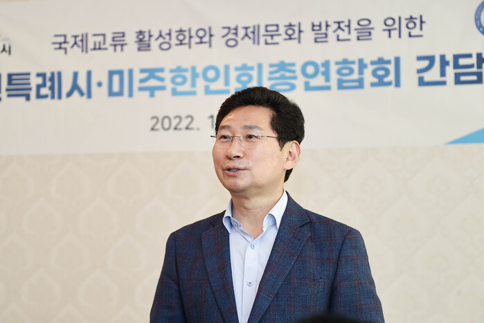 이상일 용인특례시장은 "한국에서 처음 반도체가 시작된 용인특례시는 미국 실리콘밸리에 버금가는 글로벌 반도체 중심도시로 비상할 준비를 하고 있다"며 "미국 주요 반도체도시와 자매결연을 추진해 경제 교류를 할 수 있도록 한인 동포들이 힘을 보태주시길 바란다"고 말했다.
