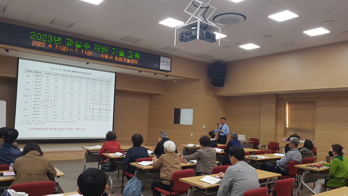 수원시농업기술센터가 7월 7일까지 센터 대강당에서 ‘2023년 과실수 재배기술교육’을 연다.