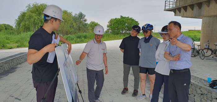 이날 김진성 환경국장을 비롯해 정석형 생태하천과장 등 10여 명이 참석한 가운데 오성면에서 유천동까지 국가하천 구간 20㎞를 자전거를 타고 꼼꼼히 점검했다.