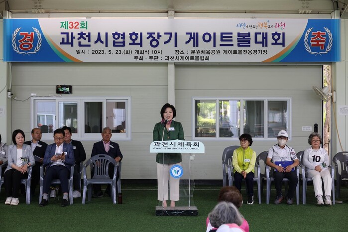 [로컬라이프] 송준형 기자 = 신계용 과천시장은 23일, 신록의 계절, 아름다운 날에 '제32회 과천시협회장기게이트볼대회'를 개최하게 된 것을 축하드린다고 말했다.