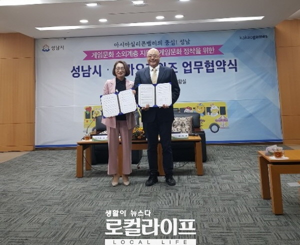[성남=로컬라이프] 임현상 기자 = 성남시는 소외계층의 문화적 빈곤 해소를 위한 정책적 해결 방안을 모색해 추진한다. 그 일환으로 성남시는 게임 콘텐츠 기업인 ㈜카카오게임즈와 손잡고 게임문화 소외계층에 대한 지원에 나선다.