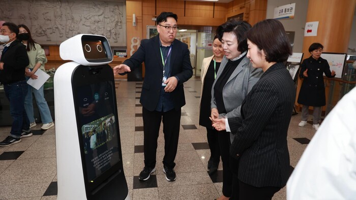 [로컬라이프] 송준형 기자 = 신계용 과천시장은 18일, 과학주간(4.17~4.21) 기념 코딩 안내로봇 시범운영으로, 시청 로비에서 안내 로봇의 안내를 받고 체험했다고 밝혔다.