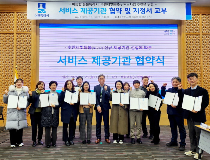 수원시(시장 이재준)가 수원새빛돌봄(누구나) 사업 확대 시행에 따라 추가로 선정한 서비스 제공기관 13개소와 협약을 체결했다.