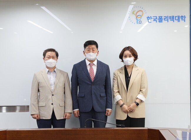 사진/광명시는 9월 8일 박승원 광명시장  조재희 한국폴리텍대학 이사장  임오경 더불어민주당 의원(광명갑)이 참석한 가운데 한국폴리텍대학 광명융합기술교육원에서 간담회를 개최했다.(사진제공=광명시)