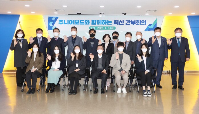 혁신주니어보드는 공직입문 5년 이내인 공무원 24명으로 구성돼 있다. 6명씩 4개팀(▹힘을내조 ▹e-호조 ▹안양주보 ▹4U)으로 구성, MZ세대 공무원의 눈높이에서 관행 탈피와 정책 및 아이디어를 제시하고, 조직문화 개선과 상하직원 간 소통창구를 여는 기능을 담당한다.