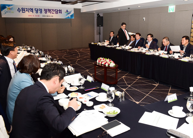 [수원=로컬라이프] 송준형 기자 = 염태영 수원시장과 수원 지역 국회의원들은 29일 팔달구 라마다 프라자 수원호텔에서 ‘2019 당정 정책간담회’를 열고, 수원시 주요 현안사업 추진을 위한 적극적인 협력을 약속했다.