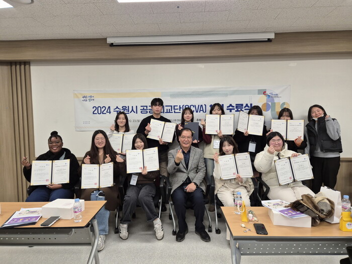 수원시국제교류센터가 23일 센터 세미나실에서 ‘수원시 공공외교단(SCVA) 11기’ 수료식을 열고, 단원 17명에게 수료증을, 우수활동자 4명에게 상장을 수여했다.