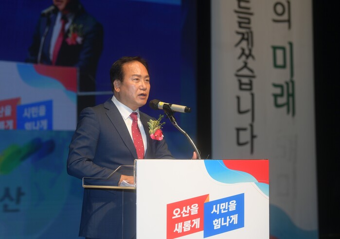 취임식은 오전 10시부터 내빈 및 시민 800여명이 참석한 가운데 개최되었으며, 식전공연, 내빈소개(영상), 약력소개(영상), 취임선서 및 취임사 낭독, 대통령 외 축하 메시지 낭독 및 축하 영상, 오산찬가 제창, 기념사진 촬영 순으로 진행됐다.