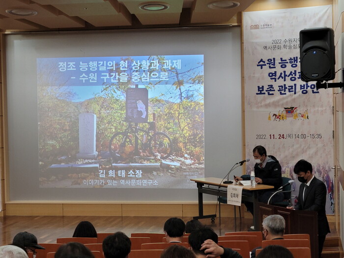 사진/2022 수원지역 역사문화 학술심포지엄에서 주제발표를 하고 있다.(사진제공=수원시)