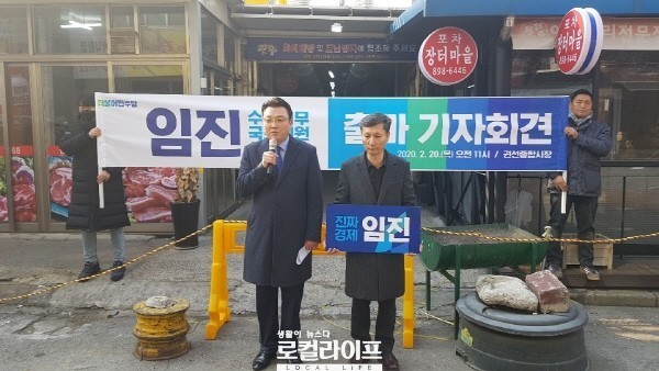 임진 전 원장은 20일, 수원시권선종합시장 앞에서 기자회견을 갖고 “대한민국의 중심, 1등 도시 수원에서 시민과 함께 모두가 더불어 잘 사는 세상을 만들어 가기 위해 이 자리에 섰다”며 출마를 공식 선언했다.
