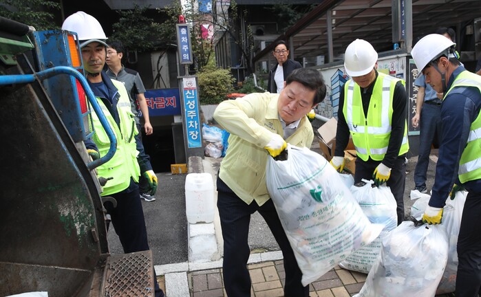 이날 박승원 시장은 소하동 일대 생활쓰레기 수거 현장에서 환경미화원들과 함께 쓰레기를 일일이 수거하였으며, 광명시 재활용쓰레기 선별장을 찾아 환경미화원들에게 감사 인사를 전하고 불편 사항 등을 청취하며 소통하는 시간을 가졌다.