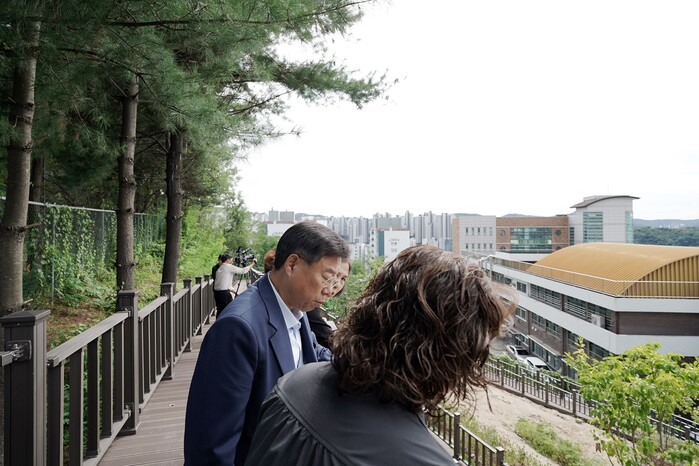 이날 현장 방문에는 신상진 시장을 비롯해 학교 관계자 및 학부모 등이 참석했다. 신 시장은 새로 완공된 180m 길이의 목재데크를 직접 걸어보며 시설의 안전성과 이용 편의성을 살폈다.