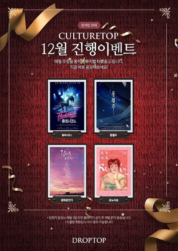 이번 컬처탑 이벤트를 통해 만날 수 있는 작품은 다가오는 새해에 놓쳐서는 안 될 초대형 뮤지컬과 전시로 마련됐다.