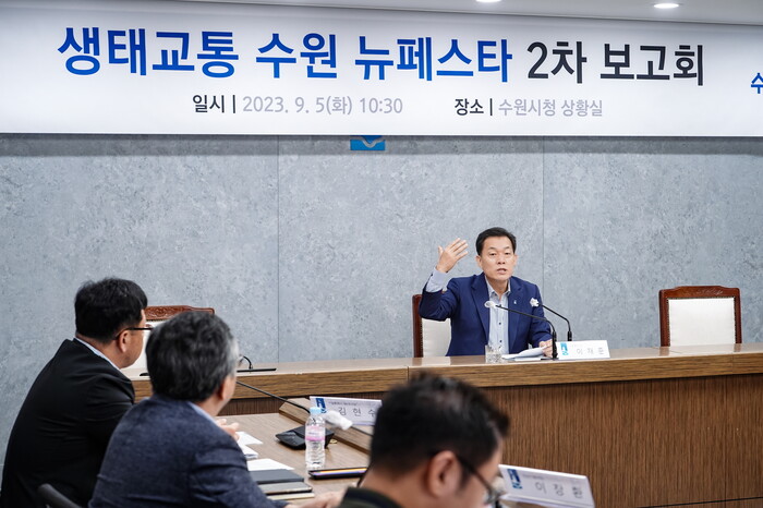 9월 5일 시청 상황실에서 열린 ‘생태교통 수원 뉴페스타 2차 보고회’를 주재한 이재준 시장은 “아이부터 어르신까지 모든 연령대 주민, 상인, 청년상인, 단체 등 모든 계층에게 역할을 부여해 축제에서 소외되는 계층이 없도록 하라”며 “생태교통 수원 뉴페스타는 행궁동 주민과 상인이 적극적으로 참여해 방문객들과 함께 즐기는 축제가 돼야 한다”고 말했다.
