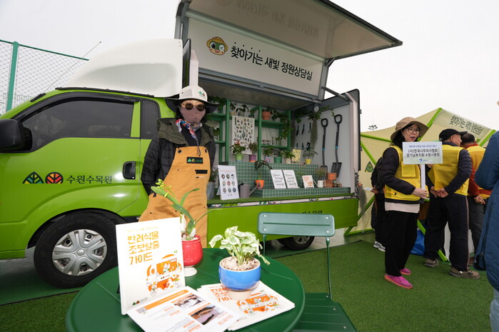 사진/지난 2일 서호꽃뫼공원에서 ‘찾아가는 새빛 정원상담실’을 시범 운영하고 있다.(사진제공=수원시)