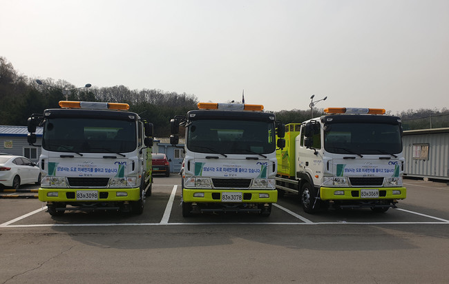 <사진/ 자원순환과-미세먼지 저감을 위해 도로에 투입하는 성남시 천연가스(CNG) 살수차들>