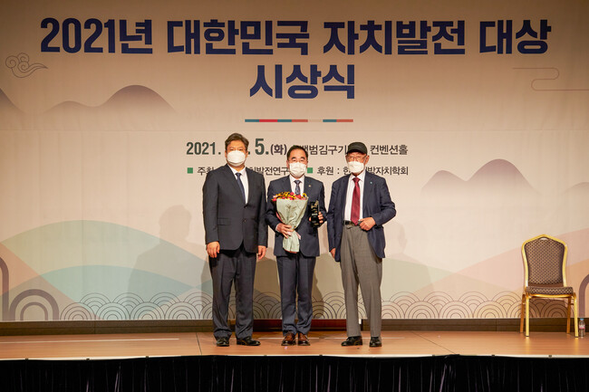 성남시의회 윤창근 의장이 10월 5일 백범김구기념관 컨벤션홀에서 열린 2021 대한민국 자치발전 대상 시상식에서 기초부문(지방의회) 대상을 수상했다.