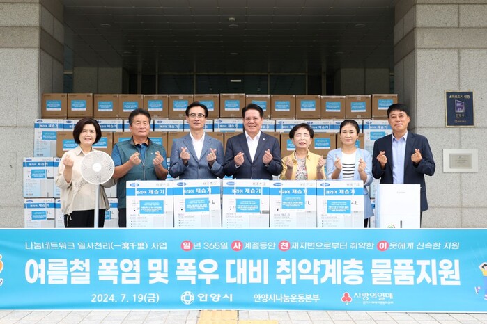 물품은 여름철 폭염과 폭우로 인한 생활 불편을 덜 수 있는 서큘레이터 97대와 제습기 73대이며, 안양시는 지원 대상가구로 반지하 거주자 중 취약한 저소득층 170가구를 선정했다.