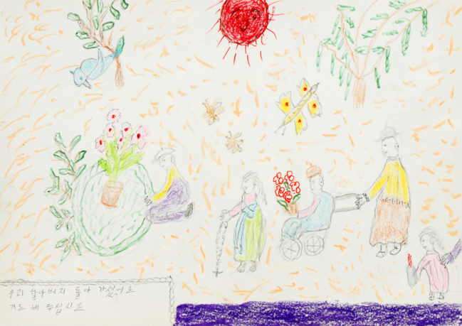 전시회에서는 올해 공모전 부문 대상을 받은 이화순 작가의 서양화 작품 ‘해바라기 선물’과 한국을 위해 60년 동안 헌신한 프랑스 수녀로 잘 알려진 노애미 테라스 수녀의 크레파스화 ‘봄날이 오면 그리운 할아버지(사생대회 부문 대상작)’ 등을 볼 수 있다.