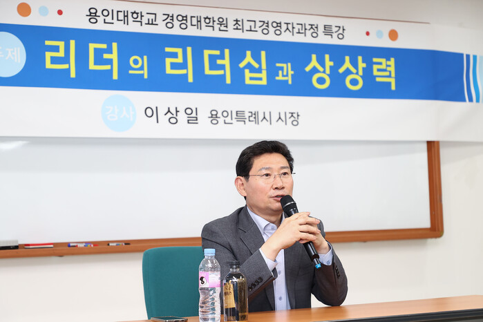 이상일 용인특례시장이 지난 25일 국민대 정치대학원에 이어 27일 용인대학교 경영대학원 최고경영자과정에서 ‘리더의 리더십과 상상력’이란 주제로 특강을 했다.