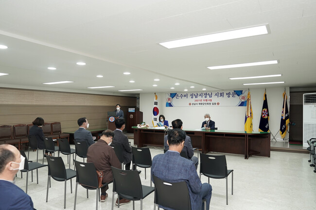 은수미 성남시장이 10월 6일 제69주년 재향군인의 날(10월 8일)을 기념, 금광동에 위치한 향군회관에 방문해 우건식 재향군인회장을 비롯한 9명 임원들을 격려했다.