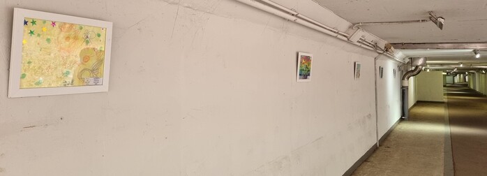 140m 지하도를 따라 설치된 44점의 작품은 시립 신봉어린이집의 4~5세반 어린이들이 '아이들이 본 코로나 세상'을 주제로 그린 그림이다.