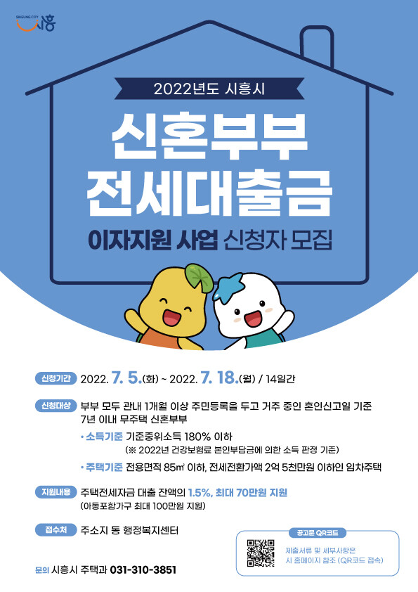 최정인 시흥시 주택과장은 “앞으로도 신혼부부의 주거비용 경감과 혼인 및 저출산 문제 극복을 위한 실질적인 주거복지 정책 지원 마련에 더욱 고심하겠다”고 말했다.
