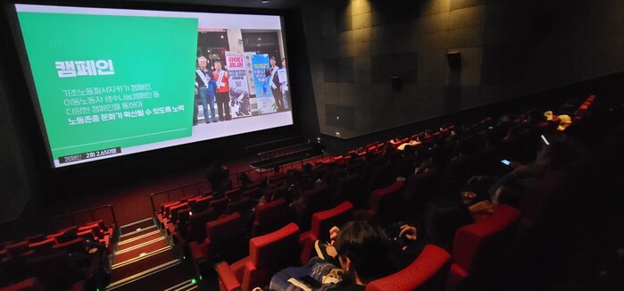 수원시비정규직노동자복지센터는 24일 롯데시네마 수원에서 ‘비정규직 여가 지원, 문화가 있는 저녁’ 프로그램을 열었다.