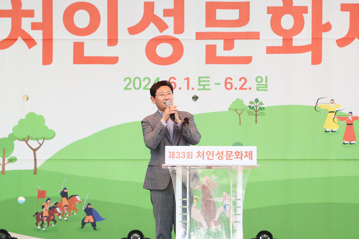 이상일 용인특례시장은 1일 오후 처인구 남사읍 아곡리 처인성 일원에서 펼쳐진 제33회 처인성 문화제에 참석해 고려를 침략한 몽골군을 격퇴한 처인성 전투를 기념하고 선조들의 호국정신을 본받자고 말했다.