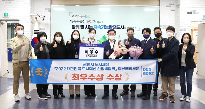 광명시(시장 박승원)는 지난 10월 25부터 28일까지 용인시 종합체육관에서 열린 ‘2022년 대한민국 도시혁신 산업박람회’에서 『혁신행정분야 최우수상』을 수상했다고 28일 밝혔다.