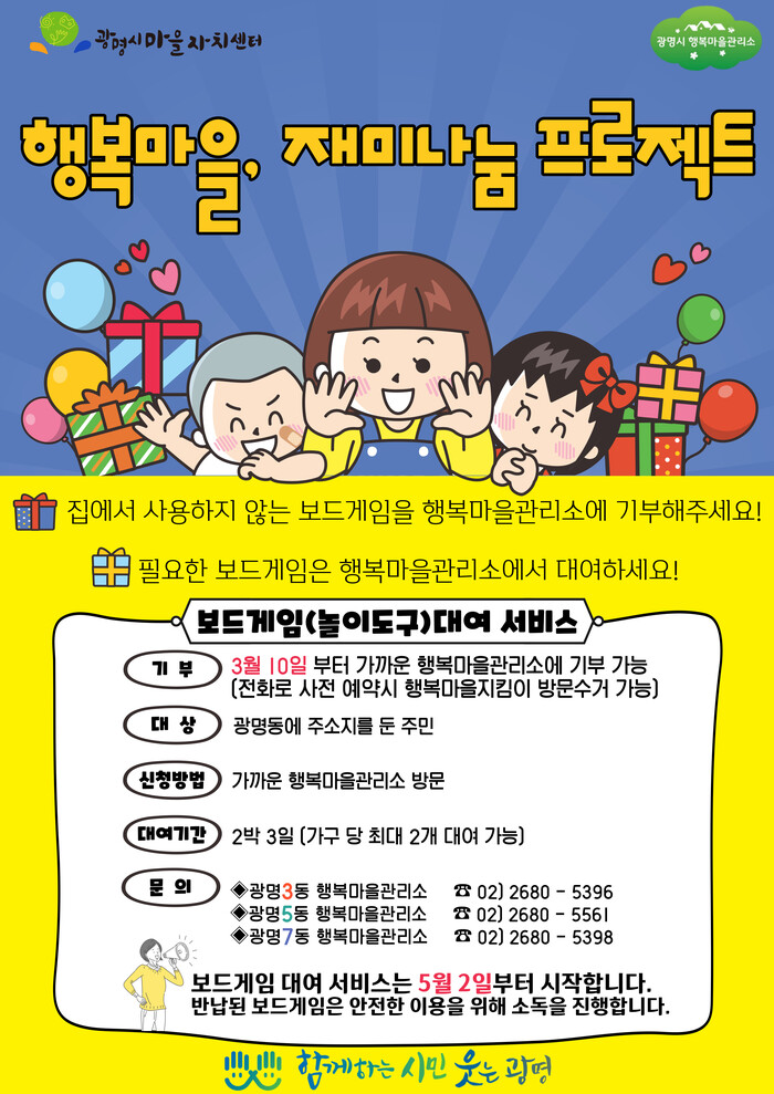 [로컬라이프] 광명시, 행복마을관리소 보드게임 대여 서비스 운영