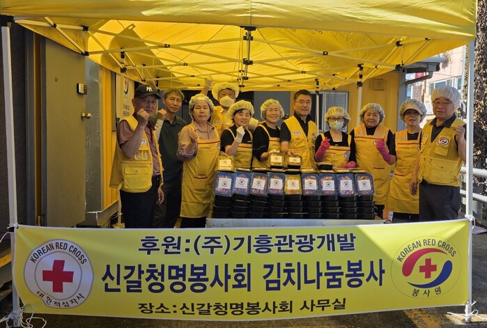 신갈동은 대한적십자사 용인신갈청명봉사회(회장 문제영)가 지난 5일 ‘여름김치 나눔봉사’ 행사를 통해 지역 내 어려운 이웃 325가구에 여름김치를 전달했다고 밝혔다.