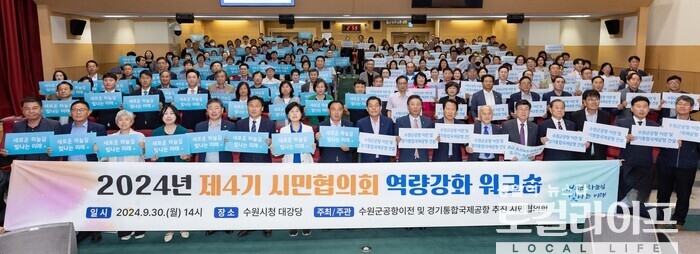 [수원=로컬라이프] 박봉민 기자 = '2024년 제4기 수원군공항이전 및 경기통합국제공항추진 시민협의회 워크숍'이 9월 30일, 수원특례시청 대강당에서 개최됐다.