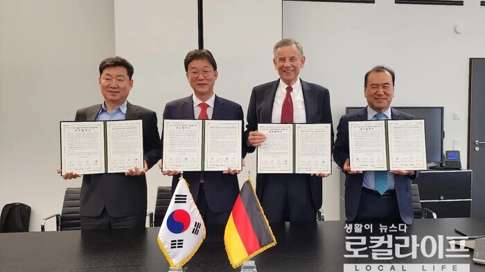 [안산=로컬라이프] 송준형 기자 = 투자 유치를 위해 해외출장 중인 이민근 안산시장이 '히든챔피언'이라는 개념을 창시한 헤르만 지몬 교수를 만나 협약을 맺었다.