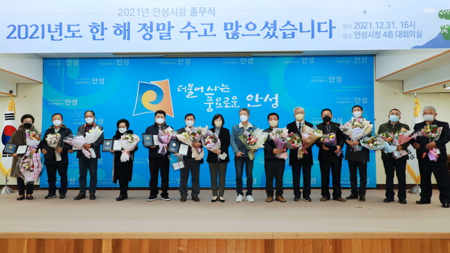 또한 김보라 시장은 송년사를 통해 코로나19의 엄중한 상황 속에서도 문화, 예술, 관광, 교육, 청년, 철도, 지역경제, 농촌 등 각 분야별로 괄목할 만한 성과를 거두었으며, 한 해 동안 어려운 상황 속에서도 새로운 안성을 위해 아낌없는 노력과 성원을 보내준 시민들과 공직자들에게 감사의 뜻을 전했다.