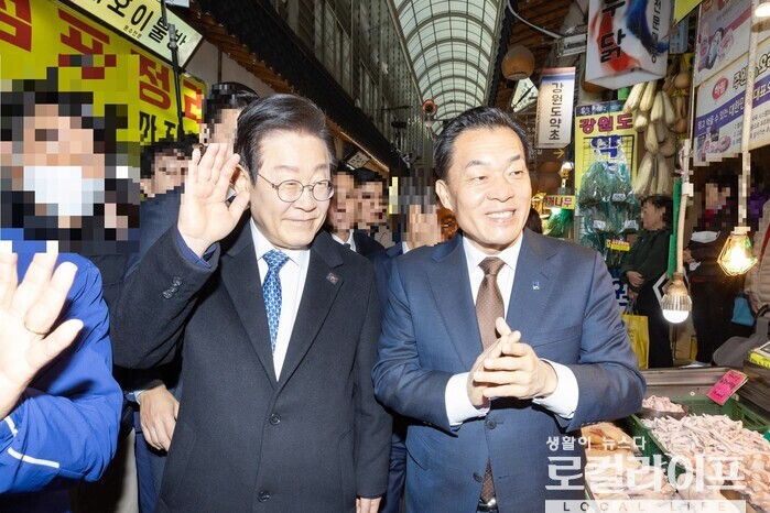 | ▲ 지난 11월 21일, 이재준 수원특례시장(오른쪽)이 이재명 더불어민주당 대표(왼쪽) 등과 함께 전통시장을 방문해 상인들을 격려하고 애로사항을 들었다. (사진출처=이재준 페이스북) |