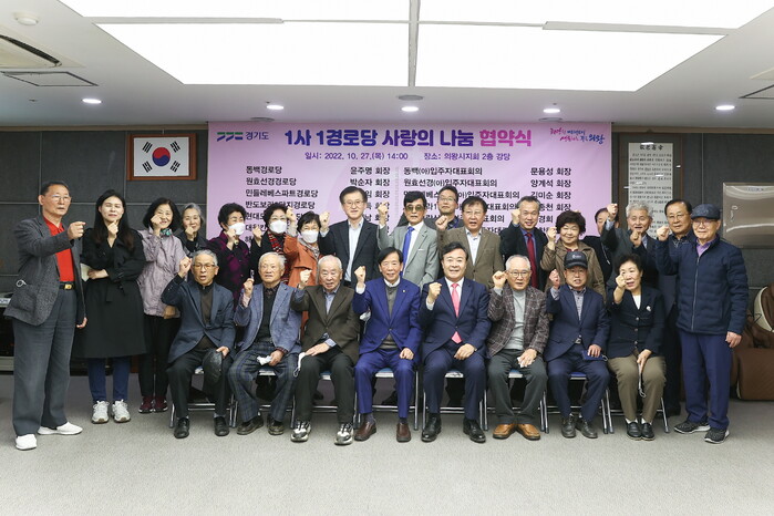 사단법인 대한노인회 의왕시지회(지회장 이종훈)는 27일 노인회지회 사무실에서 관내 10개 공동주택 입주자대표회장과 1사1경로당 사랑의 나눔 협약식을 개최했다.
