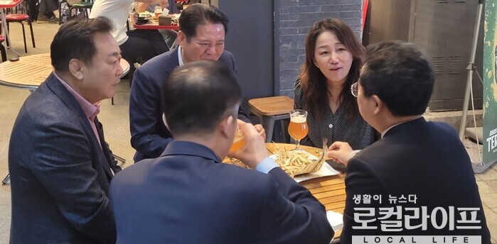 [안양=로컬라이프] 송준형 기자 = 최대호 안양시장 예비후보(더불어민주당)를 비롯해 이재정(동안을)·강득구(만안구)·민병덕(동안갑) 국회의원, 안양시장 경선에 출마했던 임채호 예비후보 등 안양 민주당 인사들이 호프미팅을 갖고 지방선거에서의 원팀 결의를 다졌다.