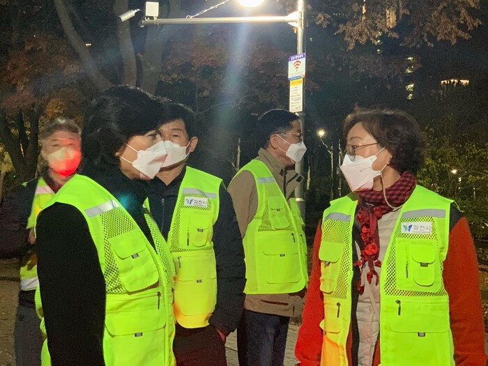 [로컬라이프] 송준형 기자 = 신계용 과천시장은 16일 저녁, 자율방범대분들과 함께 중앙공원 일대를 순찰했다.