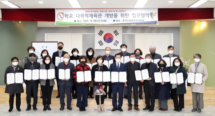 [로컬라이프] 송준형 기자 = 광명시는 광명시 초, 중, 고 31개 학교장과 다목적체육관 개방을 위한 업무협약을 체결하고 내년 3월부터 유휴시간대에 다목적체육관을 시민에게 전면 개방하기로 협약했다.