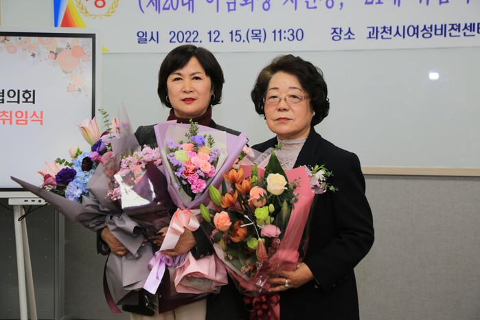 16일 과천시에 따르면, (사)경기도여성단체협의회 과천시지회 제21대 회장 취임식이 지난 15일 신계용 과천시장을 비롯해 지역 내 9개 여성단체장 및 회원들이 참석한 가운데 열렸다.