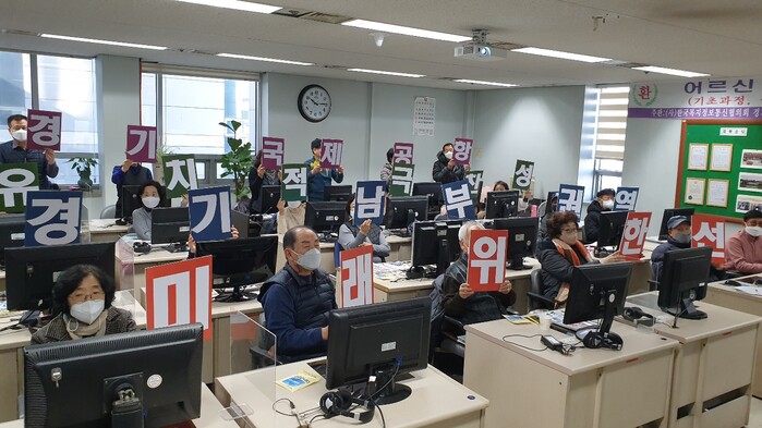 [로컬라이프] (사)한국복지정보통신협의회 경기지부는 5일 KT 남수원지사에서 경기국제공항 바로알기 특강을 듣고, ‘경기국제공항’ 유치의 필요성에 대해 공감하며, 국제공항 유치 찬성 피켓 퍼포먼스를 진행했다.