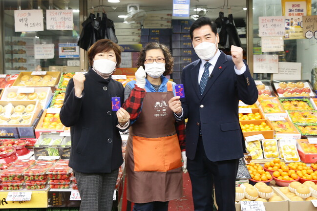 김 시장은 코로나19 장기화에 따른 경기침체와 소상공인 매출감소가 가속화되고 있는 상황에서 직접 장을 보면서 설 명절 물가동향을 파악하고, 힘든 상황에서도 꿋꿋이 지역상권을 지키고 있는 상인들을 격려했다.