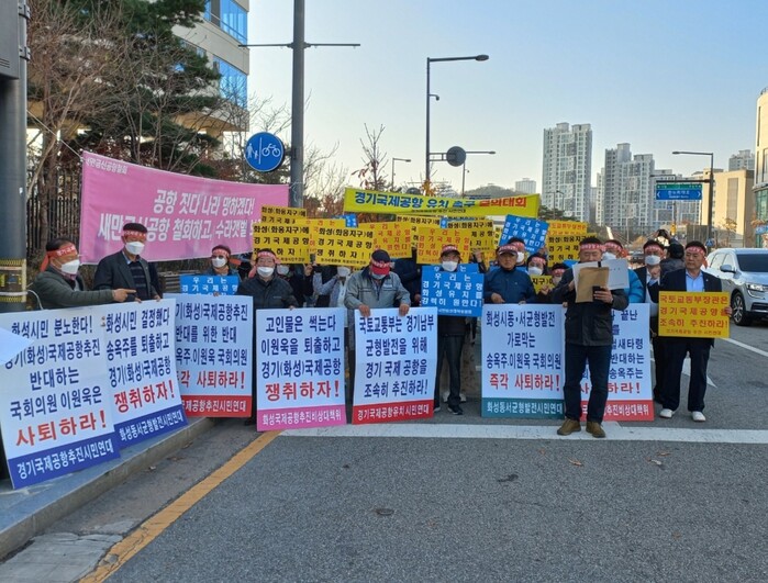 [로컬라이프] 화성시 ‘경기국제공항’ 건설을 찬성하는 시민단체 연합인 경기국제공항 유치 화성시민연대는 25일 오후 5시 정부세종청사 앞에서 ‘경기국제공항’ 유치를 촉구하는 결의대회를 진행했다.