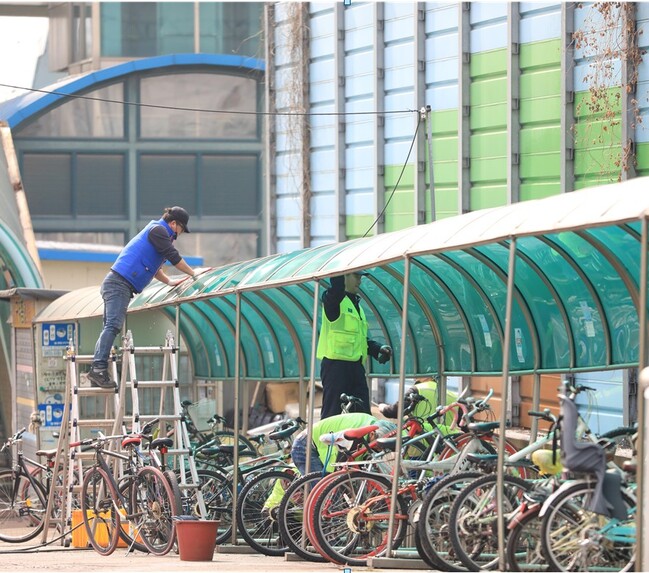 수원시가 봄을 맞아 관내 전철역 주변 자전거 보관대를 비롯해 이용률이 높은 자전거 보관대 224개를 세척한다.